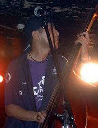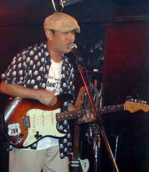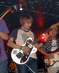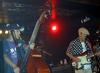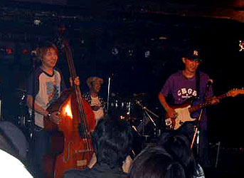 OCT.14 ★ 2001 ///新宿JAM/// 恒例「小岩でロックパーティー」、トリで登場。オヤジパワー炸裂! 久々にHossyコーナーもありました。 アンコール。 何か変だぜ! そう。楽器をチェンジしてみた。 しかも、それぞれが殆ど弾いたことのない楽器を。 曲は「バットマンのテーマ」。 もちろんマトモに演奏できるわけがなく、完奏ならず(笑)。