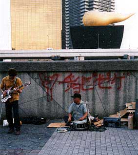 |  | 1999/8/22 浅草 この日は上野公園で演奏する予定でしたが、演奏開始直後に現われた管理人に追い出されたため、急遽予定を変更して浅草に移動しました。