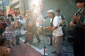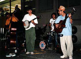 |  | 1998/7/4 JR市川駅前 スリーベース・ヒットのホームグランド(?)です。 中央でバンジョーを弾いているのは、
