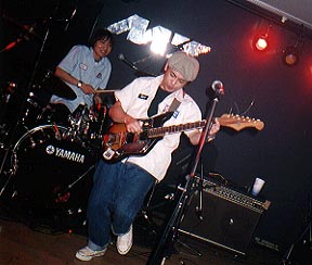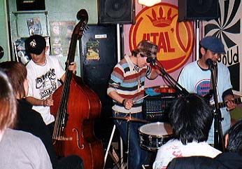 2001/1/1 市川ヴィザヴィ 今年もここでHAPPY NEW YEAR!。 いつにもまして超ハイテンションでブチ切れだぁ!!! 新世紀の幕開けにふさわしい(?)ライヴでした。 4/29深夜に、またここヴィザヴィに出演します。 この日は夕方からロックン・ローラーズとして、新宿JAMでライヴがあるのですが、終わってから駆けつけます! ヴィザヴィは市川駅北口から徒歩3分ぐらいの所にあるバーです。 市川市市川1-8-10 0473-26-9135(地図がなくてスマン) 2001/2/18 小岩M7 スリーベース・ヒットの1stCD発売記念ライヴ。 慌ただしい一日だったね。 昼間はスタジオ練習で、ゲストのHIKARUさんとハリーを加えた ライヴの音合わせはこの日が初めて。しかも新曲があったりするし(笑)。 さらに出来上がったCDが届いたのもこの日(爆)。 まだパッケージングされてないから、リハの合間にみんなで手分けして袋詰め! 滑り込みセーフって感じでなんとか間に合いました(汗)。 しかしこの時点で出来上がりの音をまだ聴いてないオレらって・・・。 この日の対バンはDOG HEART、DOG'GIE DOGG、The5.6.7.8's という強剛揃い。 特にゴロッパのパフォーマンスは圧巻! ウチらはリキみすぎで空振り連発でした??? ♪写真をクリックすると大きな画像が見れるよ♪ DOG HEART DOG'GIE DOGG The5.6.7.8's スリーベース・ヒット Copyright (C) 2000-2002.Three Base Hit. All Rights Reserved.